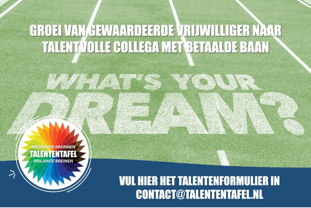 De Talententafel biedt kansen om betaald werk te maken van passies. Op basis van onder andere jouw talenten, vaardigheden, passies en hobby’s, matchen we je aan één of enkele concepten.
